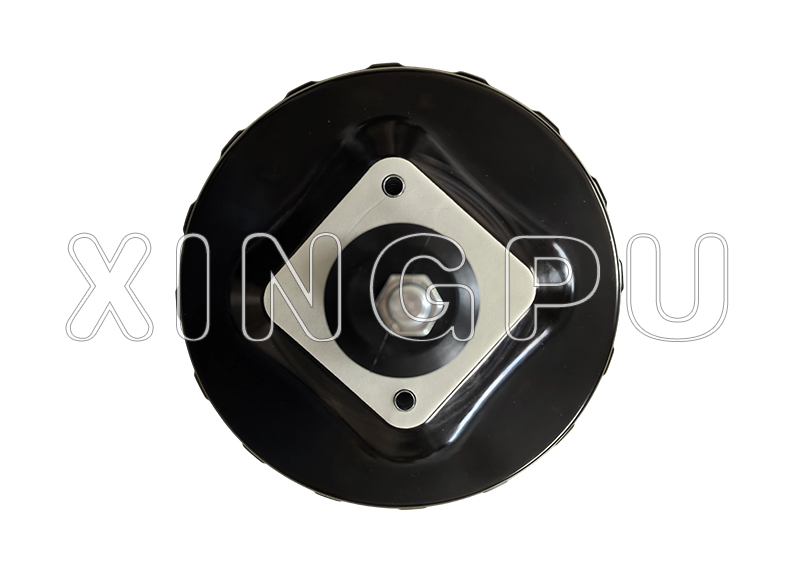 Brake booster is a round black cannister, located at the back of the engine compartment