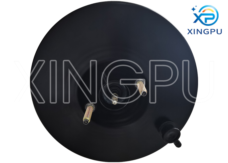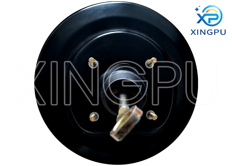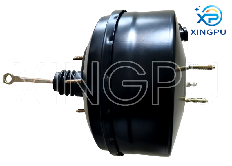Brake booster is a round black cannister, located at the back of the engine compartment