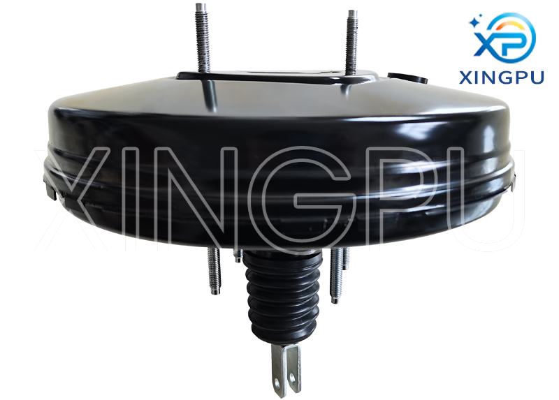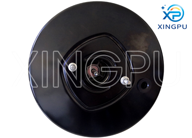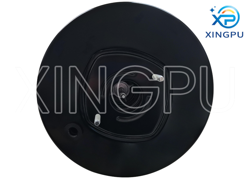 Brake booster is a round black cannister, located at the back of the engine compartment