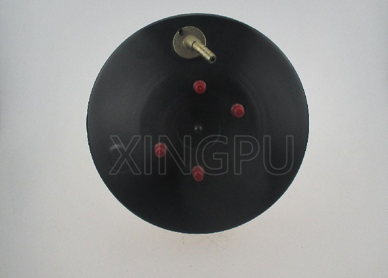 Brake booster is a round black cannister, located at the back of the engine compartment