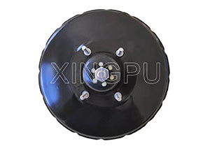 Brake booster is a round black cannister, located at the back of the engine compartment
