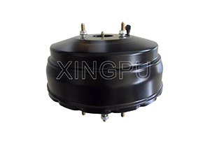 Brake booster is a round black cannister, located at the back of the engine compartment